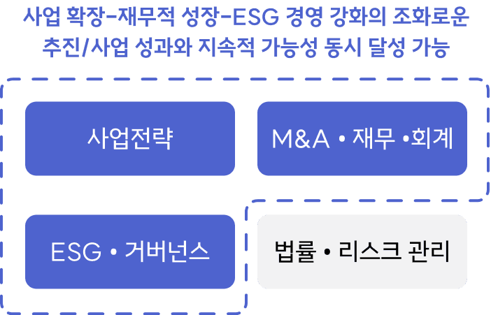 기업 성장 및 가치 제고 경험재무/회계 및 법률적 전문성